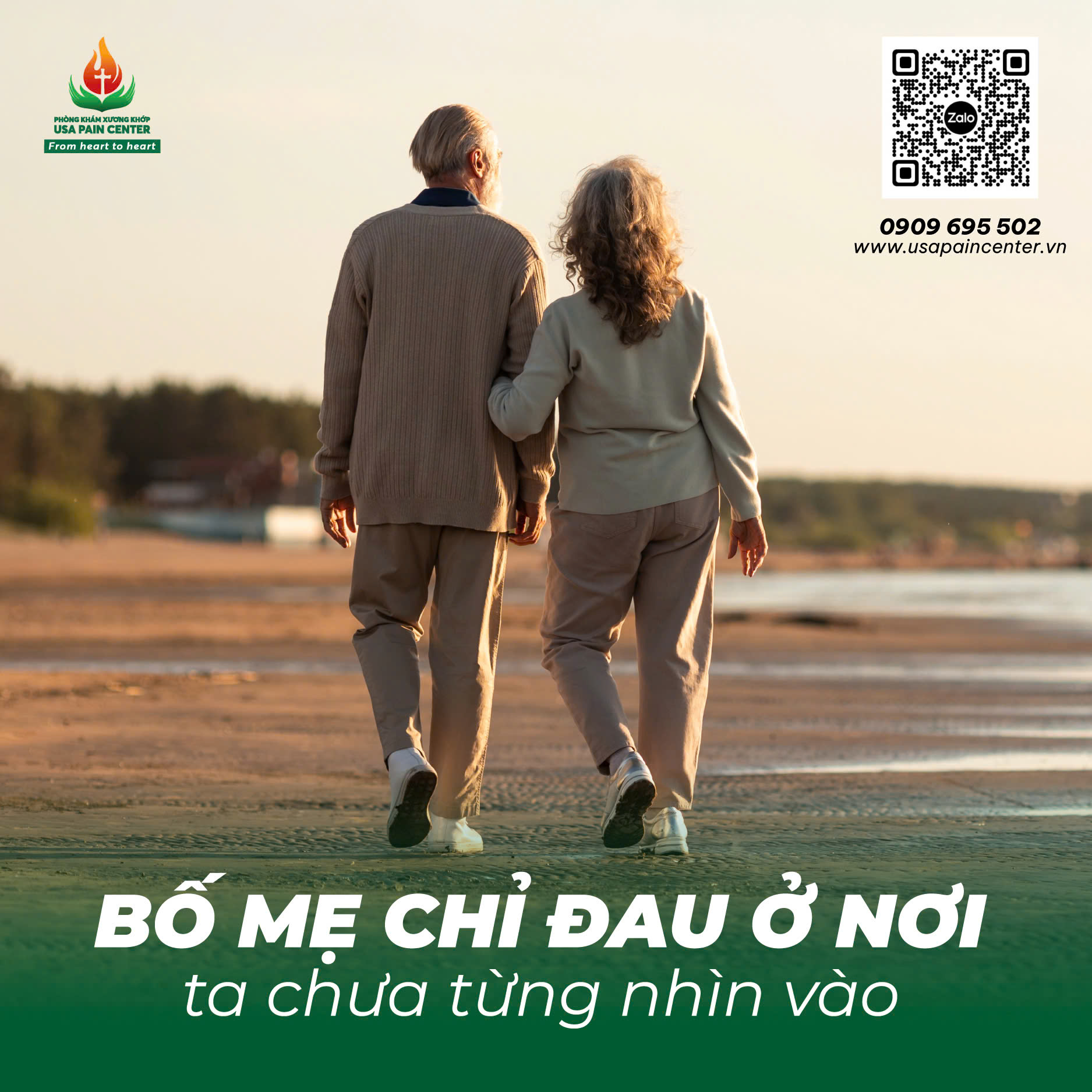 Bạn là người tinh tế, thương yêu bố mẹ và có sự hiểu biết rộng. Đừng để bố mẹ ở lại với cơn đau “giấu kín.” Cách dễ nhất là trò chuyện, quan sát, và giúp họ mạnh dạn gõ cửa bác sĩ và theo đuổi một hành trình phục hồi sức khỏe cơ xương khớp toàn diện, từ việc lựa chọn phương pháp điều trị không xâm lấn như trị liệu thần kinh cột sống, thể dục dưỡng sinh, khí công, thay đổi chế độ ăn uống, nghỉ ngơi và vận động hợp lý, cùng các hoạt động chăm sóc sức khỏe tinh thần. Hãy giúp bố mẹ lấy lại ước mơ đam mê thời trẻ và nguồn năng lượng tinh thần thanh xuân luôn âm ỉ cháy trong tim.