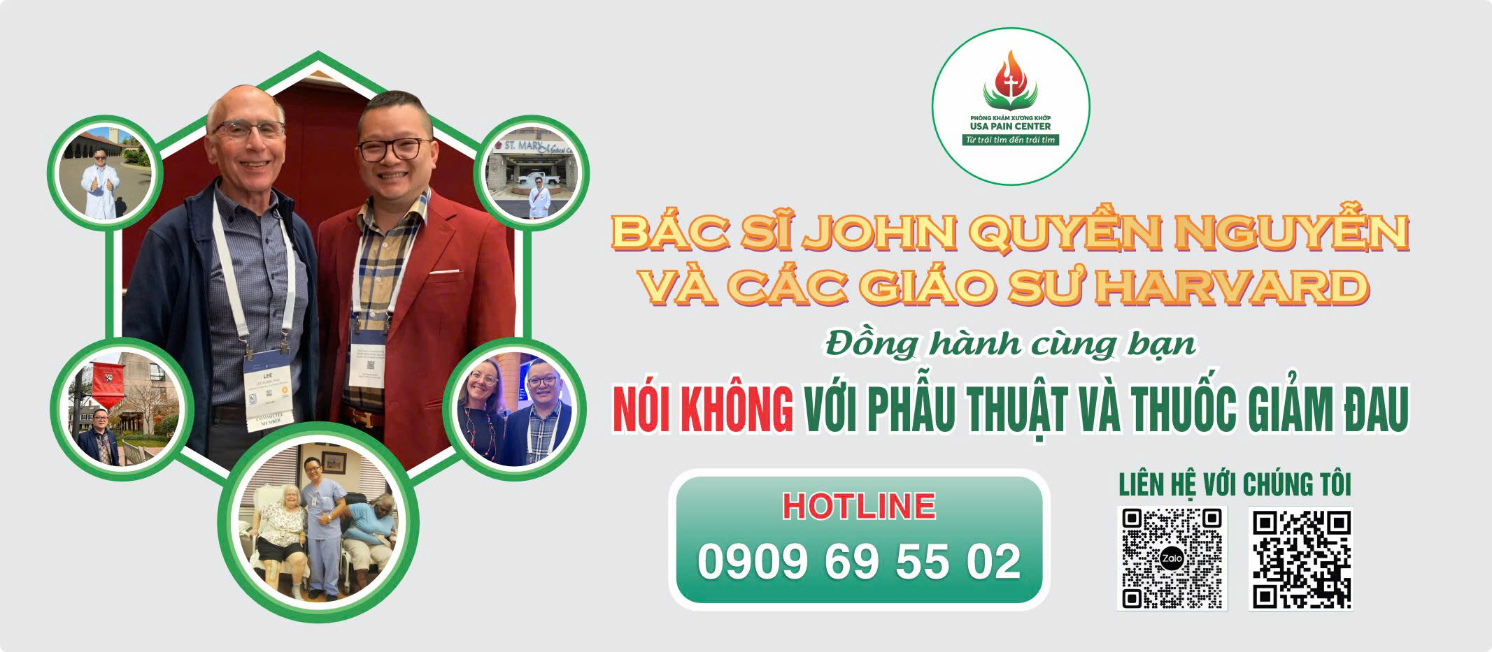 Với phương châm điều trị Từ trái tim đến trái tim, USA Pain Center tự hào về: Phương pháp điều trị đau và bệnh cơ xương khớp thần kinh ứng dụng y khoa Harvard 2025, nói không với thuốc giảm đau, không phẫu thuật, giúp bệnh nhân hồi phục dần từ bên trong.